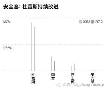 青岛啤酒仍然是第一,比重接近30%。值得称道的是雪花啤酒,比重提高了11%,超过燕京和百威位居第二。其实单从销量说,雪花早在2011年就已经突破1000万千升,超过青啤;但是对于雪花定位不高的质疑从未停止,也因此雪花一直在努力提升品牌形象,近年来赞助古建筑摄影大赛、举办勇闯天涯活动,“雪花纯生”和“勇闯天涯”等中高端系列产品大幅增长,调查中比重的提升也可以证明它的努力成果。